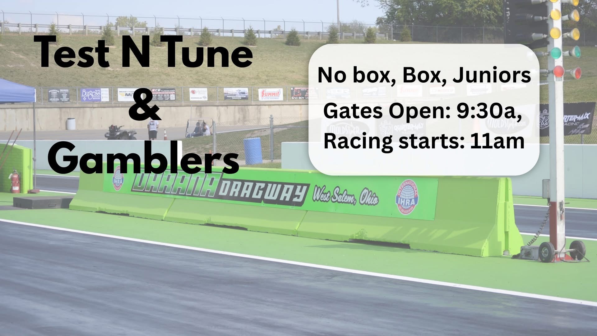 1/4 Mile. Prepped Track. All Vehicles Permitted. IHRA Rules Apply.