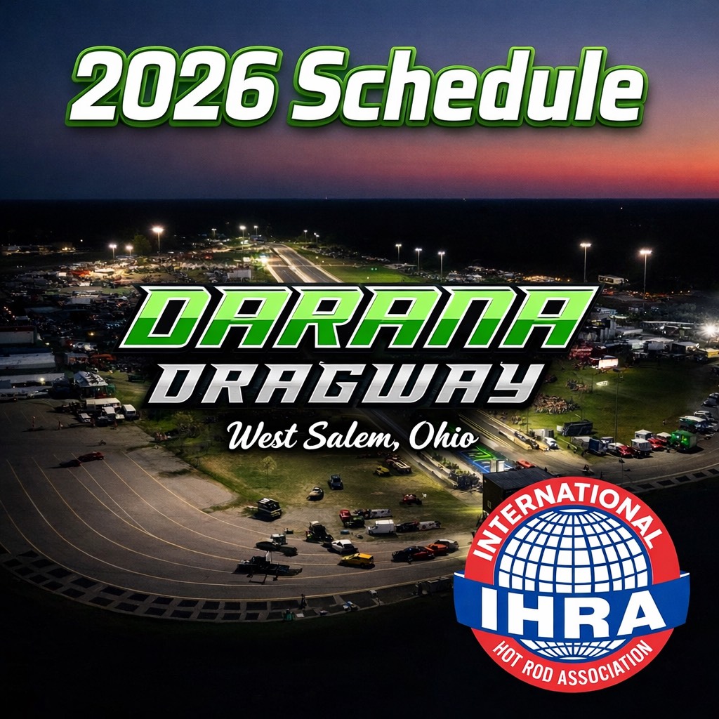 Here is your 2026 Darana Dragway – West Salem, Ohio (formerly Dragway 42) season schedule! Additional information regarding class structures, rules and payouts will be available at a later date. We look forward to seeing you back at the track this season!